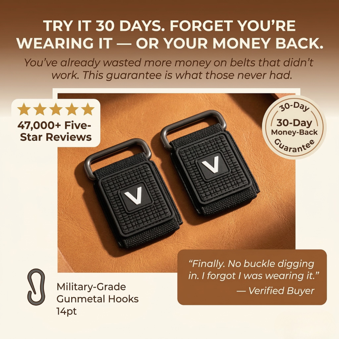 30-day money-back guarantee, no questions asked. You've already spent more on belts that failed you with no guarantee at all.